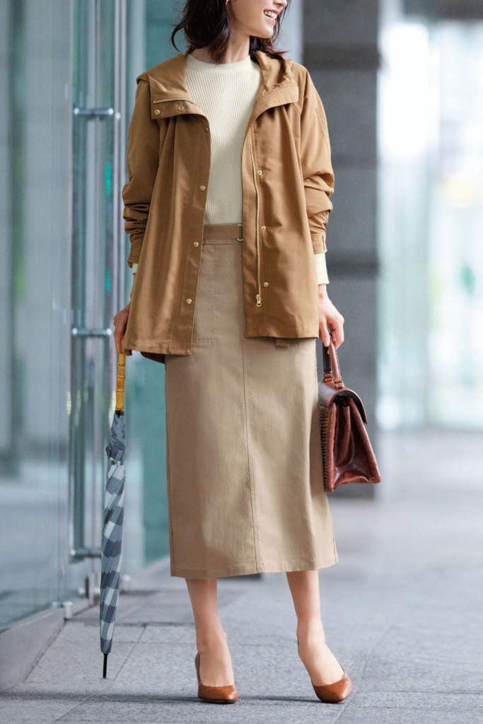 Iラインスカートをブラウンコーデで上品に