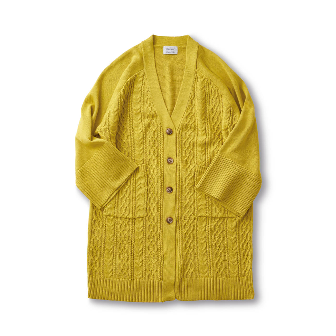 暖色のロングカーディガンで見た目も着心地も暖かく