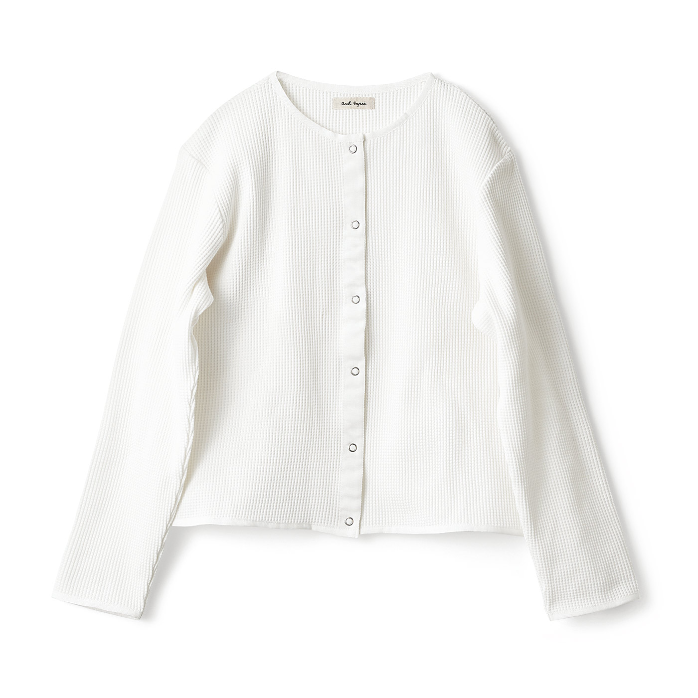 フロントボタンが付いたカーディガンは、アレンジ次第で着こなしの幅が広がるのが魅力です。