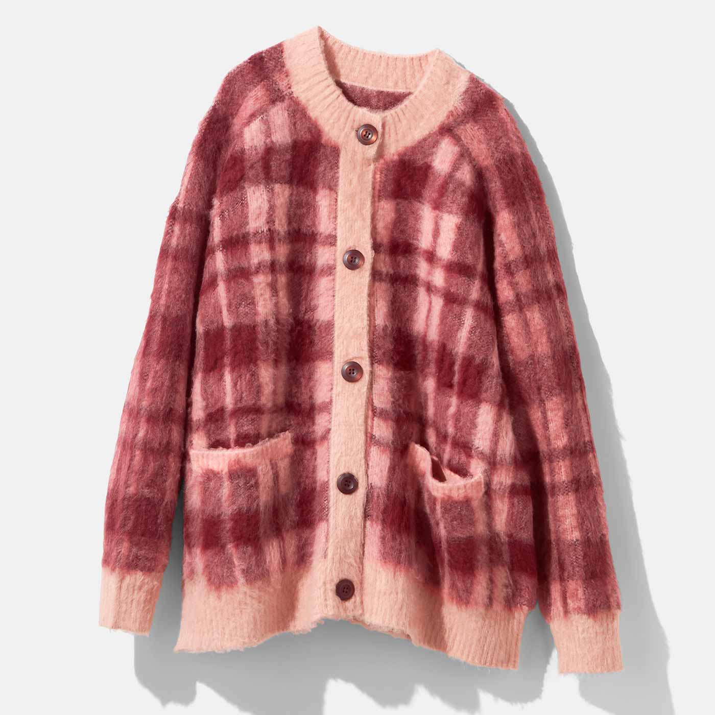ゆるっとしたシルエットはリラクシーでこなれて見える一方で、バランスが崩れるとだらしなく見えてしまうことも。オーバーサイズのカーディガンを選ぶときは、インナーかボトムスのどちらかは、タイトなシルエットを選んでみて。また、厚手のカーディガンは着ぶくれして見えやすいので、オーバーサイズは避けてジャストサイズを選ぶのがベター。
