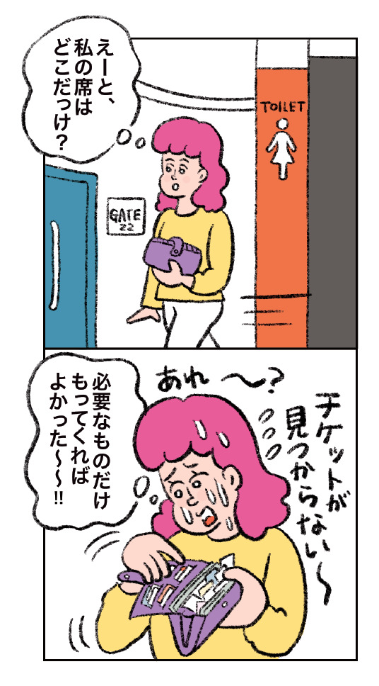 荷物を座席に置いて、トイレにGO!これで安心と席に戻るとき、スタッフの方に「チケットの半券を確認します。」と言われてハッ!私どこに入れたっけ?!ってなったことはありませんか?