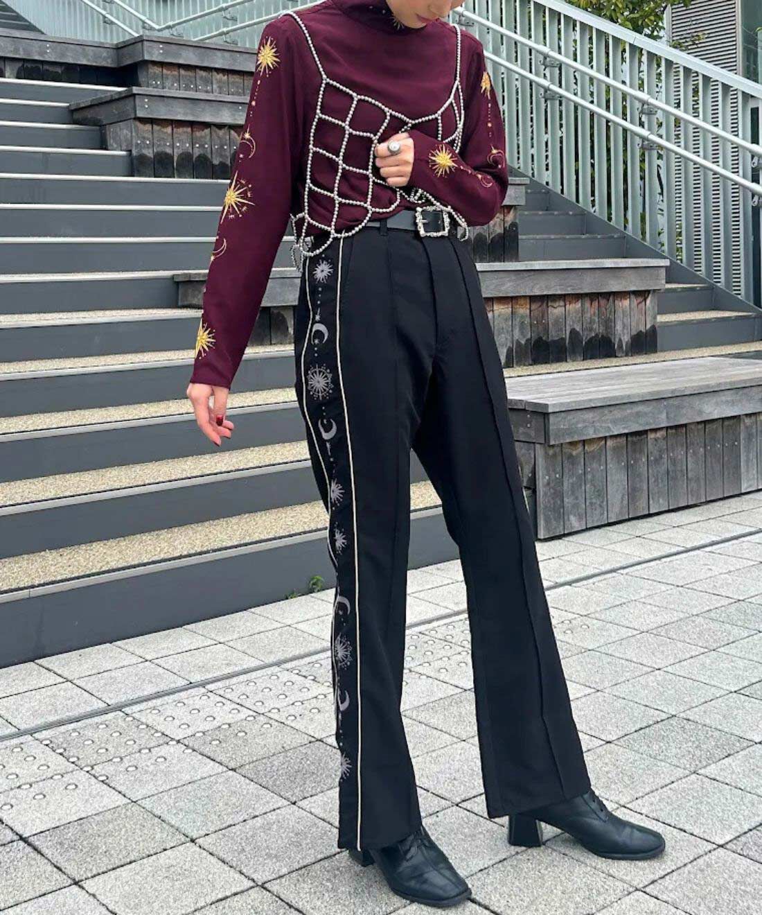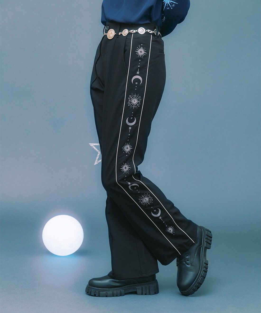 格式ある魔法使いの装いを叶える 星を導き月を映すラインすそフレアパンツ