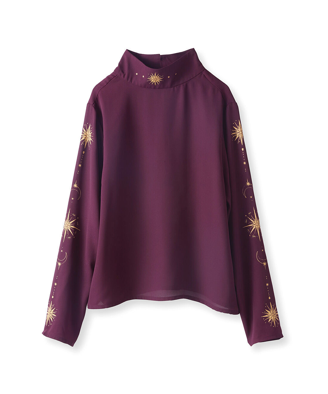 サイドのラインに沿って連なる月星のモチーフは、トップスの柄と連動した繊細なデザイン。そして、最大の魅力は計算し尽くされたシルエットにあります。