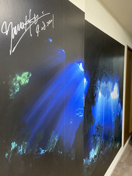 夜は、ダイブクーザの新串本店でお祝いのスッテカー水族館を貼る。これは大久保軍団からのプレゼント!