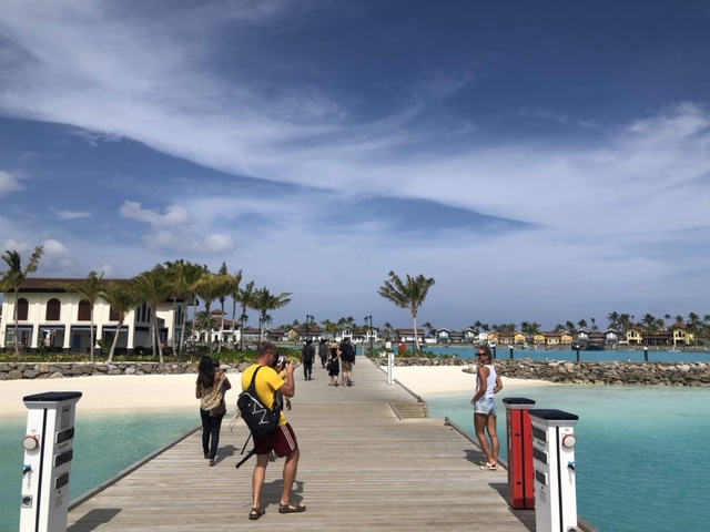 写真を撮ってくれるクルーの後ろに見えるフルマーレ島の、連立するビルに驚く。