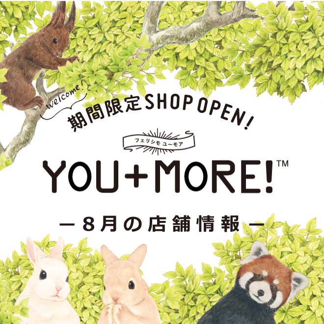 8月のYOU+MORE!期間限定ショップ情報をお届けいたします。